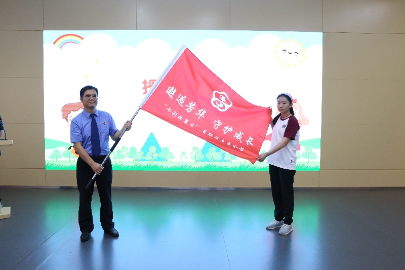 暑期法治夏令营上常州经开区检察院副检察长杨剑为小营员授旗